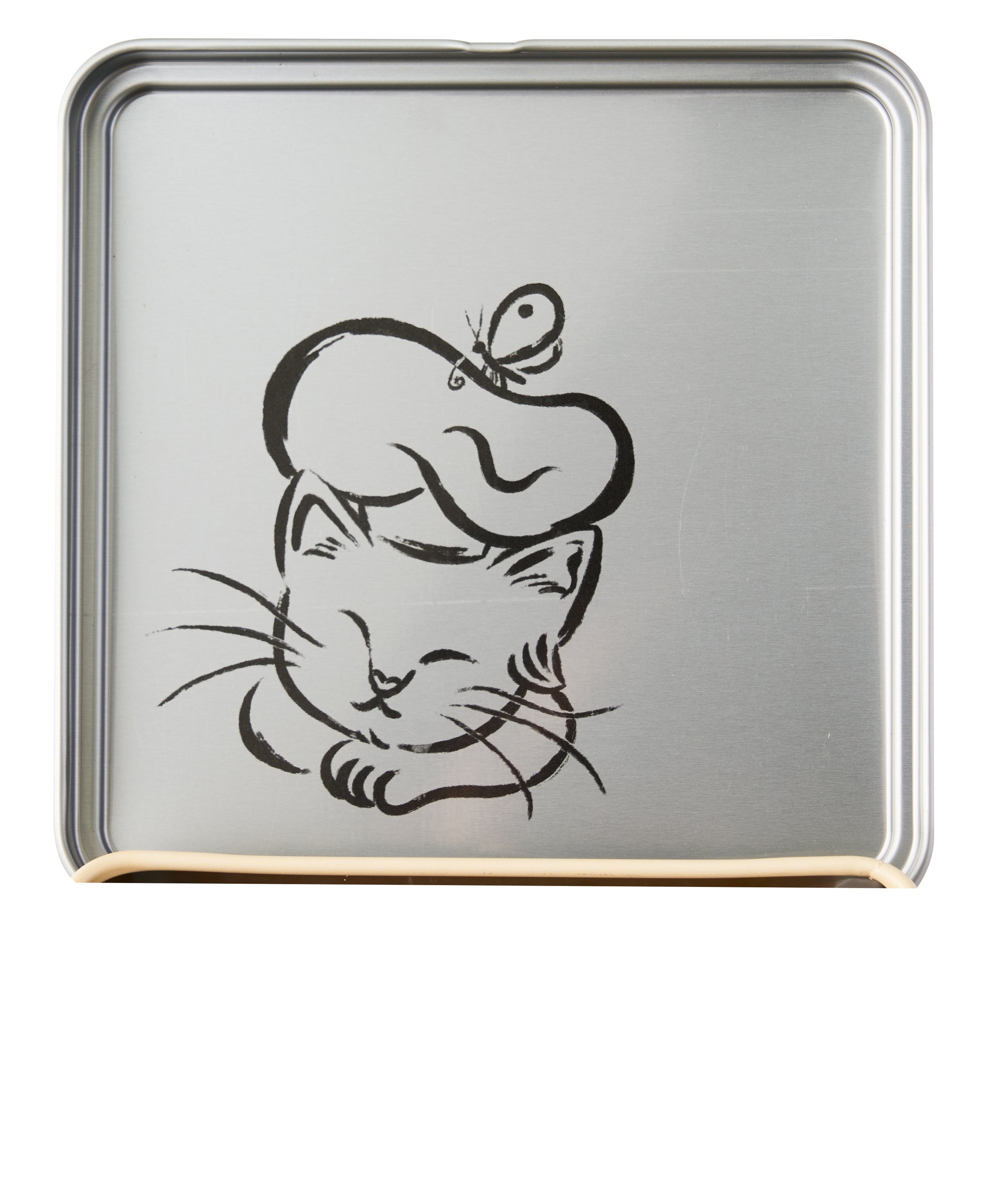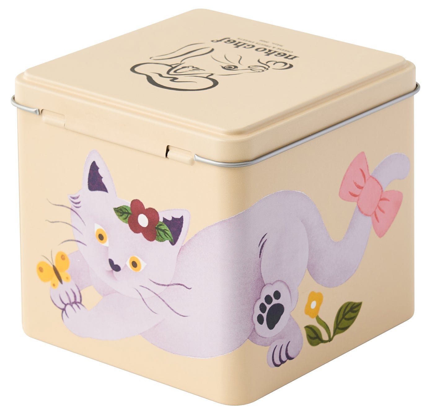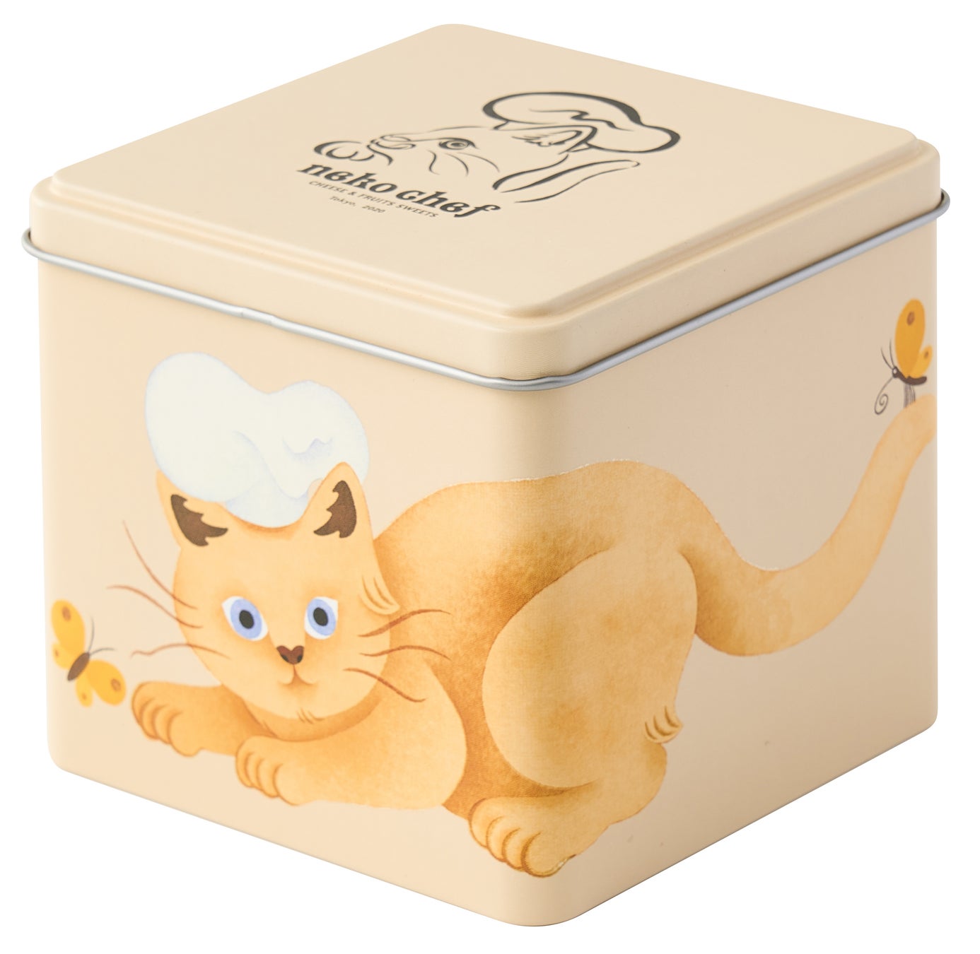 キューブ型の缶には、「ネコシェフ」とネコシェフが想いを寄せる「ソフィ」が仲良く蝶々を追いかけている姿が。ついに片想いが実るのかと思いきや…実はネコシェフの〝夢〟なのかも知れません。缶を開けてみると、その事実が分かるかも!?