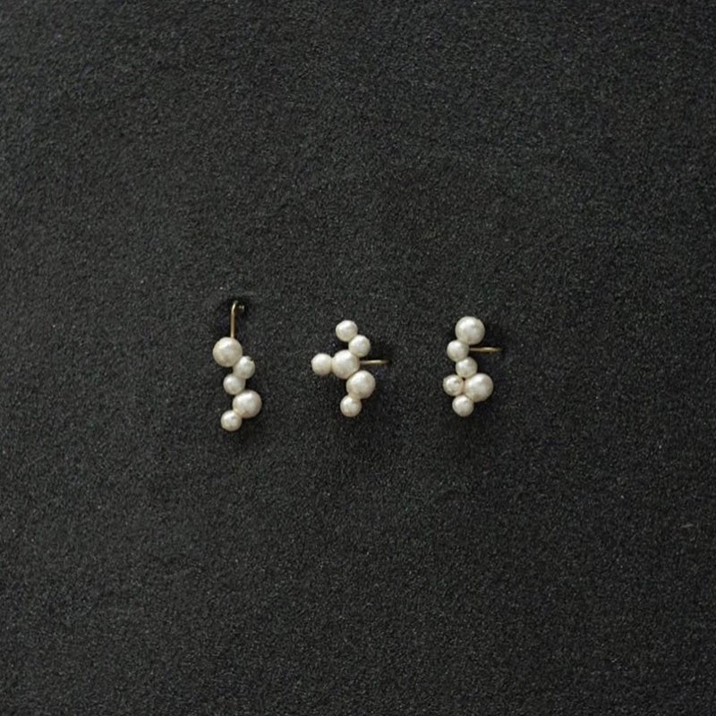 一見シンプルながらも、パールの大胆な配置の仕方や、他では見ないような一癖あるデザインが魅力です。