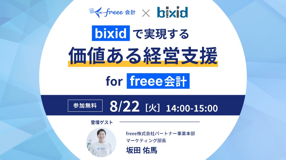 8月22日(火)オンライン開催「bixidで実現する価値ある経営支援 for freee会計」