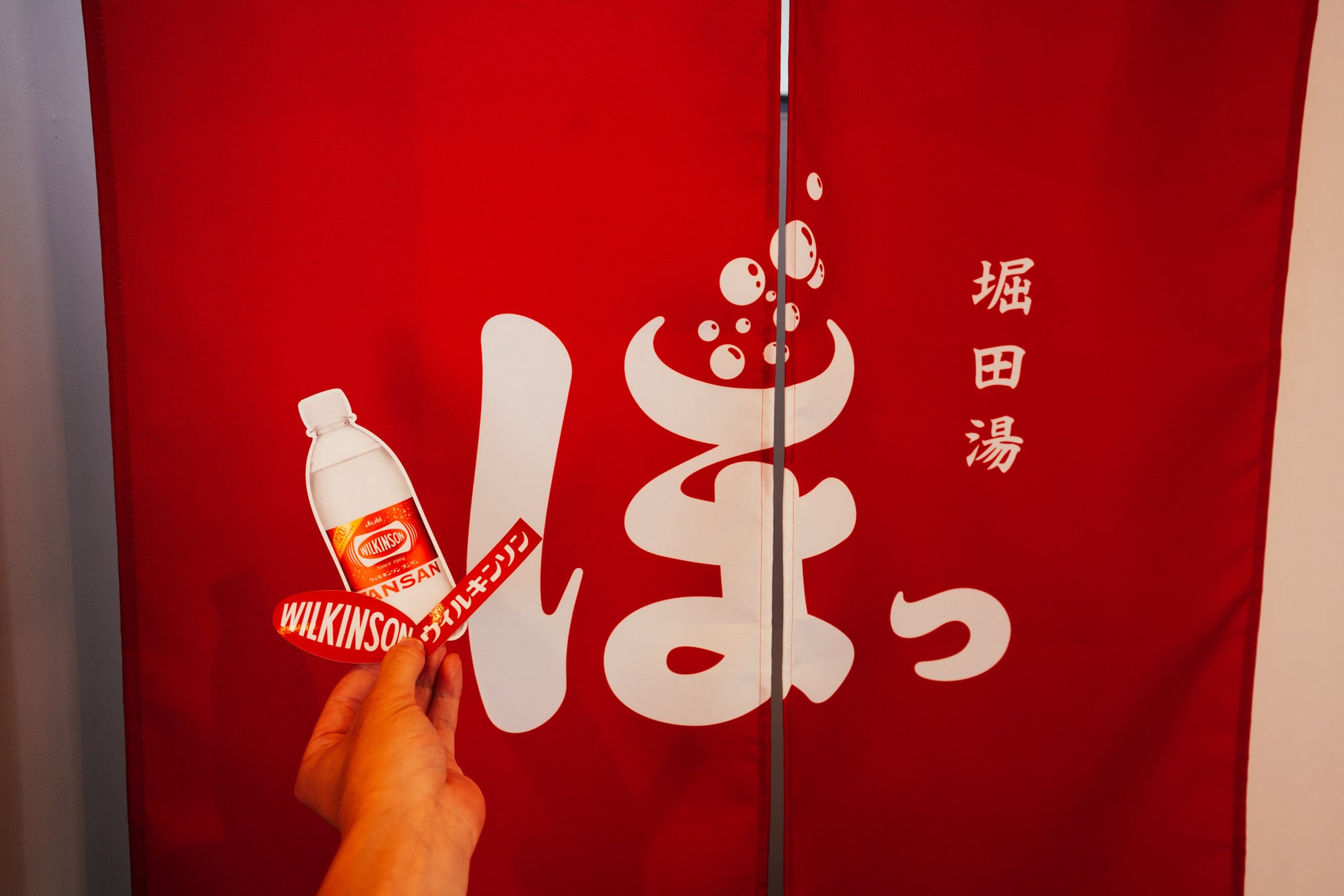 堀田湯では既存の堀田湯ロゴがウィルキンソン仕様に変わるなど、期間中はウィルキンソン一色の特別な空間が作り出された。