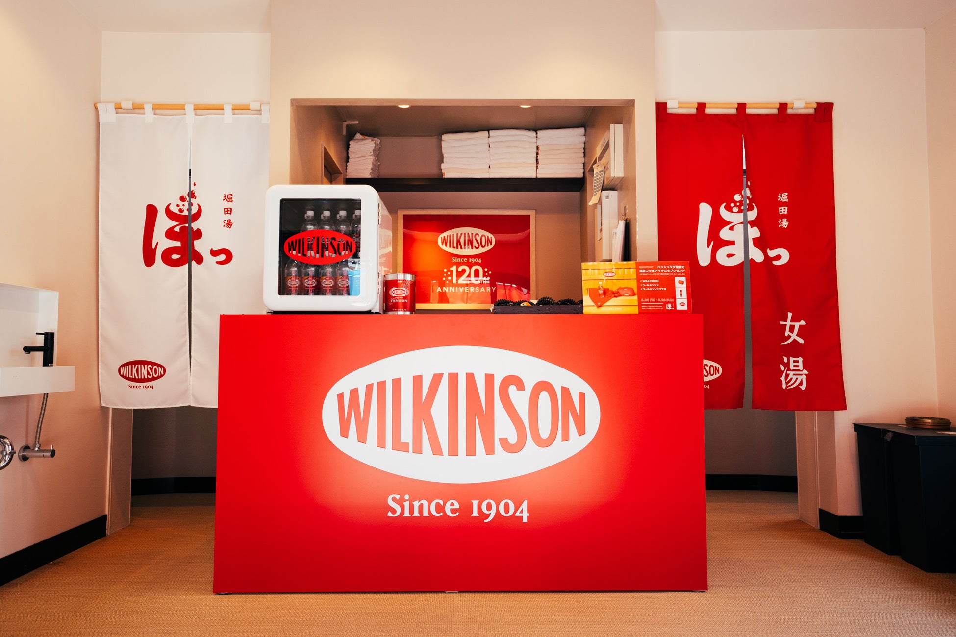 コラボイベントに合わせ、各銭湯は内装をウィルキンソン仕様に変更。暖簾や受付などにウィルキンソンのロゴが施され、ウィルキンソンカラーである赤と白のカラーをテーマに内装がアレンジされた。