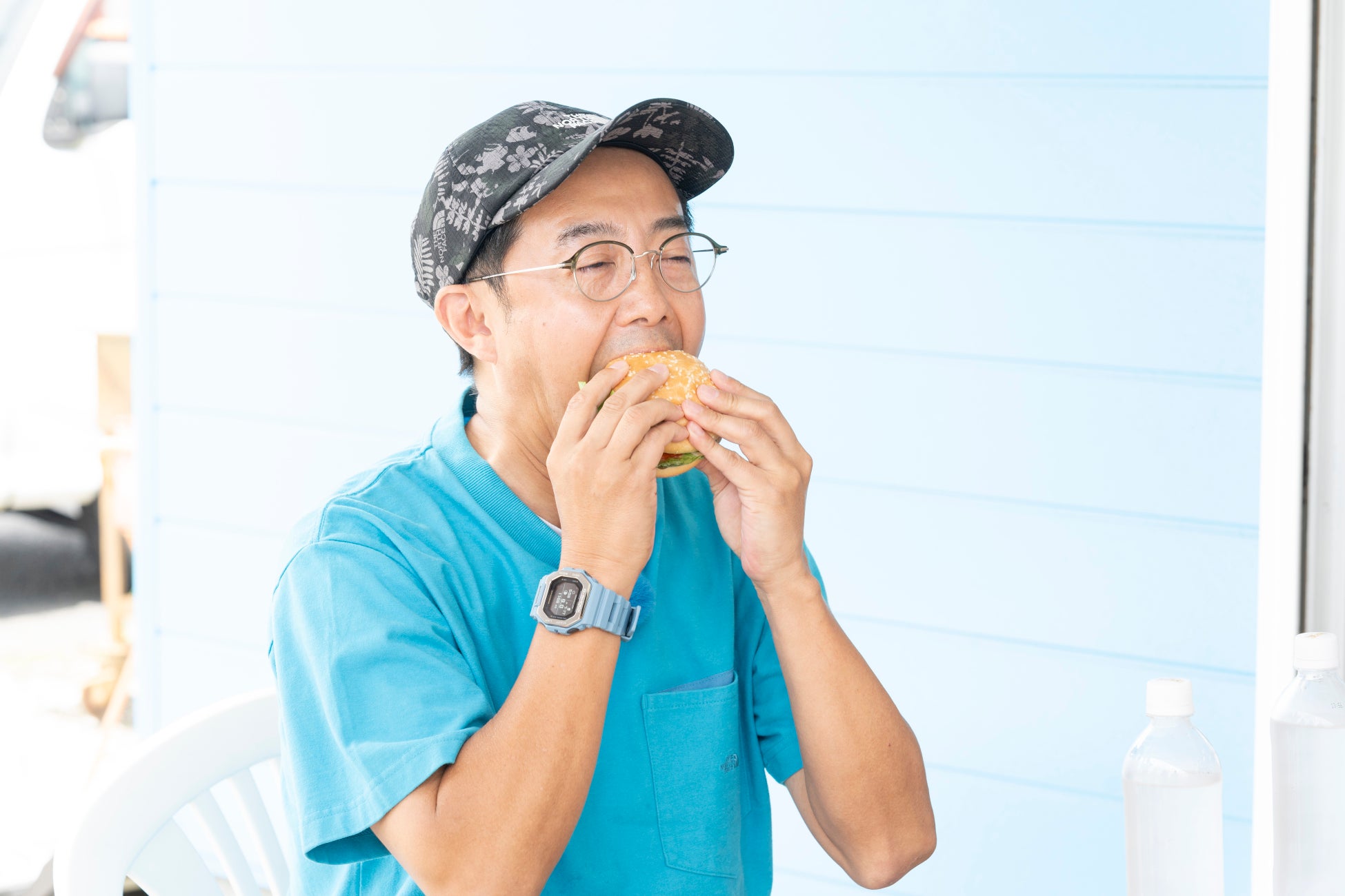 一行は食材調達のため、近海でとれた選りすぐりの貝を販売する貝専門店へ。濃厚な出汁が取れるというオススメの「ハマグリ」を購入。さらに、イートインが可能ということで「大アサリフライ」や「クラムチャウダーコロッケ」のお惣菜を買って、オリジナル貝バーガーを作ることに。