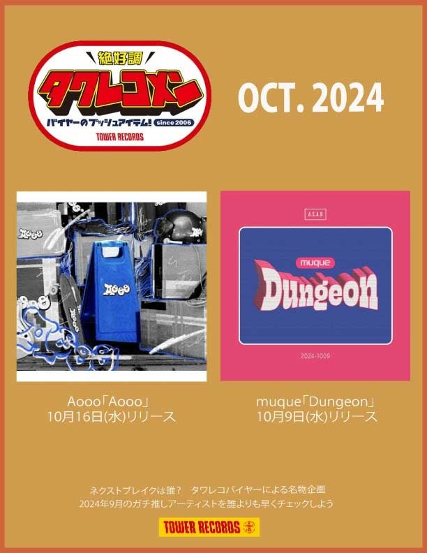 タワレコメン10月度 ラインナップが決定!Aooo・muque 2組が選出!