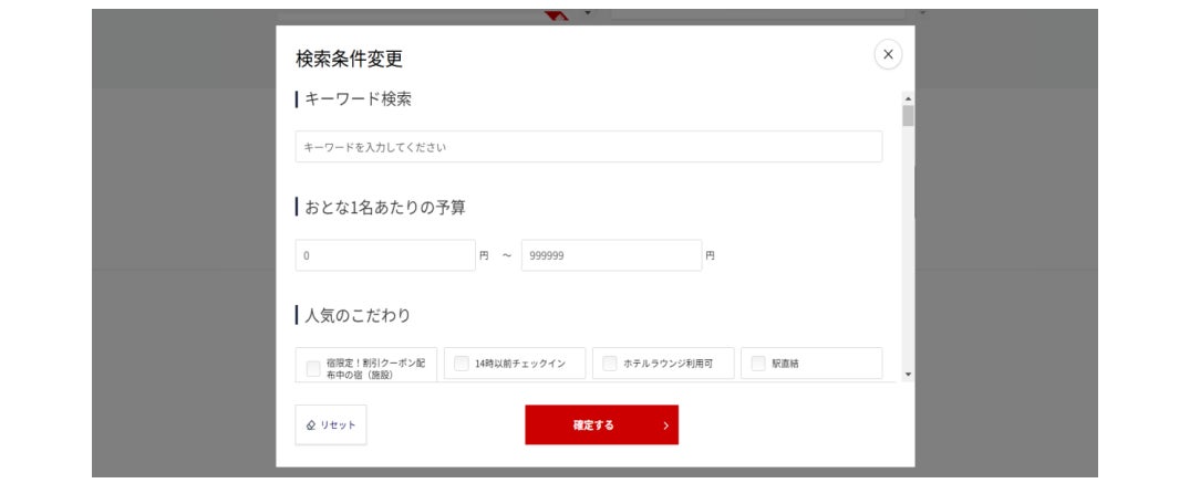 あなただけの”こだわり”が100を超える条件から絞り込みできる他、キーワードや予算なども指定できるようになりました。