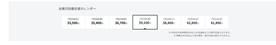 指定した出発日の前後3日間のリアルタイムな最安値をいつでも確認できるようになりました。