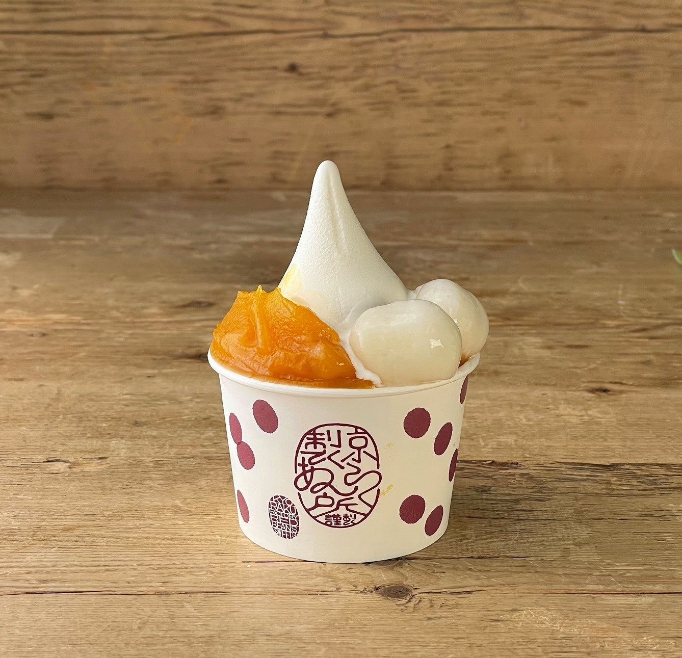 ●京らく製あん所/完熟マンゴーあんミルクソフト[白玉団子](1人前) 550円
