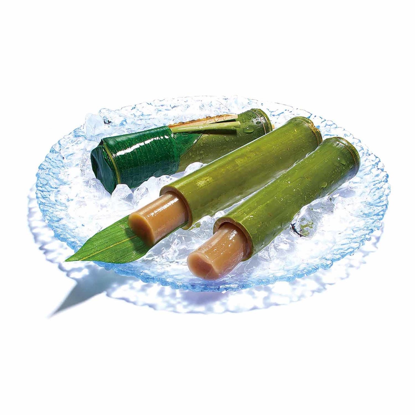 見た目も涼やかな青竹筒に流した水栗羊羹。 ※写真は盛り付け例です。