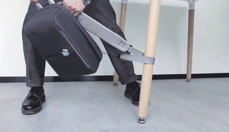 また、ストラップはすぐに着脱できるようになっており、机の足などに通してやれば咄嗟の置き引きなどを未然に防ぐことができます。