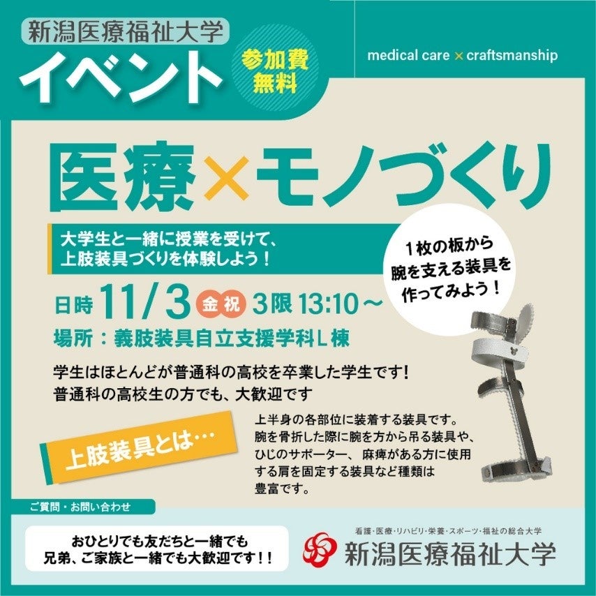 【新潟医療福祉大学】「義肢装具」を製作する授業を体験してみよう!11月3日(金・祝)開催!