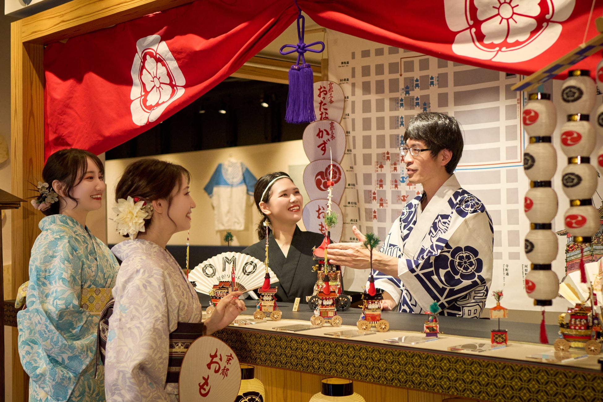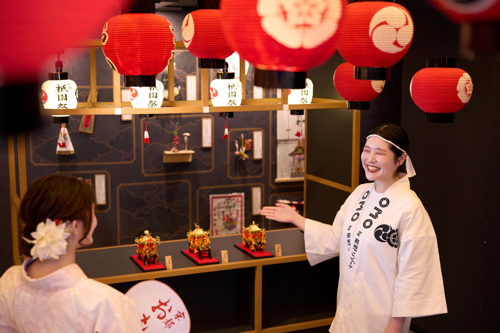 見る・買う・食べるの「楽しい」がギュッと詰まった「街ナカ」ホテル「OMO5京都三条(おも) by 星野リゾート」と、祇園の街に暮らすように過ごす「街ナカ」ホテル「OMO5京都祇園(おも) by 星野リゾート」では2025年6月14日~7月31日の期間、京都の夏の風物詩「祇園祭」をそれぞれの地域から深く知るイベント「宵のおも祭いろは」を開催します。7月1日から1か月にわたり開催される「祇園祭」をテーマに、設えを変身させた空間で、祇園祭マイスター(*1)による祇園祭講座や、祇園祭限定の食体験をすることで、祇園祭気分を味わえます。また、日にち限定で「お稚児(*2)」や「神輿会(*3)」の経験者をゲストスピーカーとして招待。祇園祭を違った角度から知ることができます。また、宿泊者限定で、2施設合同企画も開催。「動く美術館」とも称される山鉾(*4)が巡行する山鉾町のすぐそばに位置する「OMO5京都三条」と、祇園祭において最も重要な神輿渡御(*5)が目の前を通る「OMO5京都祇園」のアクティビティをはしごすることで、祇園祭についての理解がより深まります。