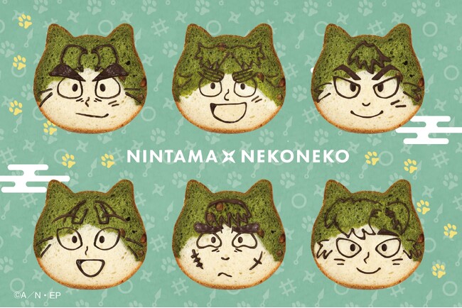 ねこの形がキュートな『ねこねこ食パン』から、忍たまの六年生の制服の緑色をイメージしたコラボフレーバーが登場。よもぎと小豆を練り込んだ生地で忍者の「頭巾」を再現し、はちわれ模様に仕上げました。また、SNSで話題の“にゃんともおいしい”シリーズも「忍たま乱太郎」とコラボいたします。