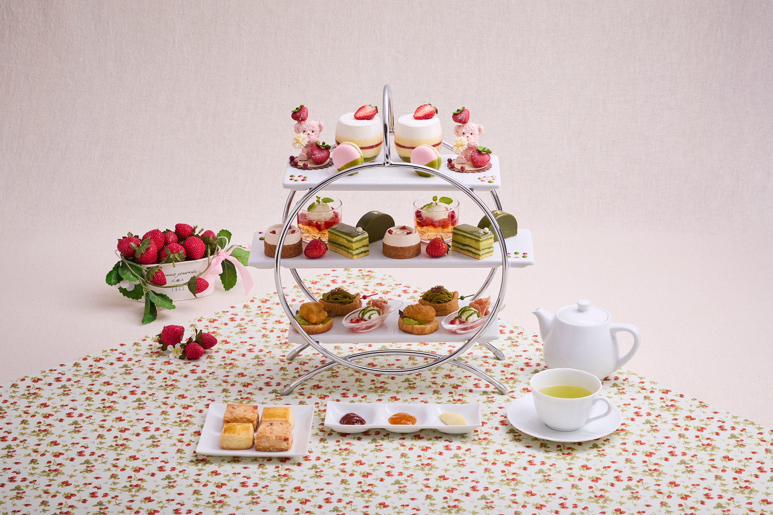 いちごと抹茶の魅力あふれるアフタヌーンティーで心ほどける贅沢なティータイムをお過ごしください。
