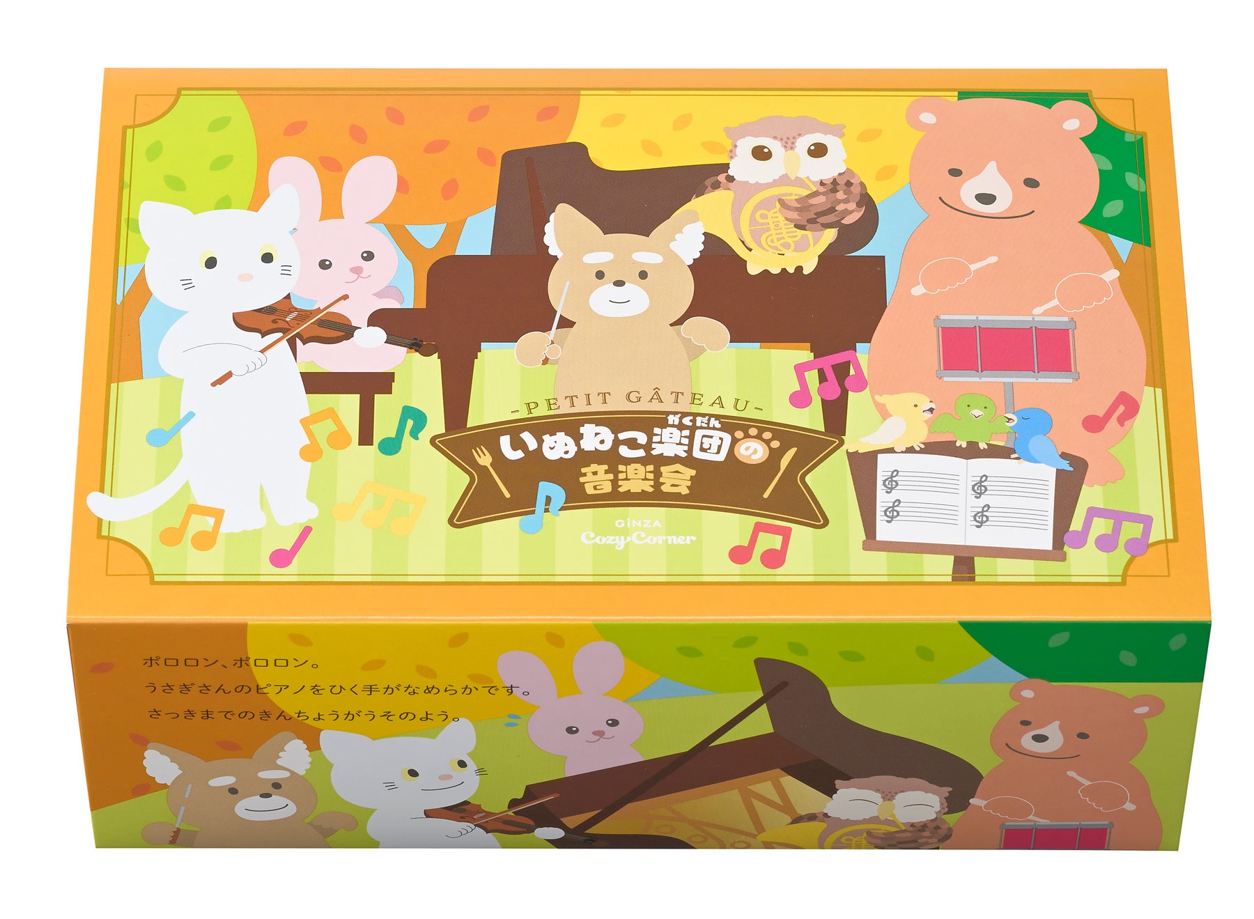 【銀座コージーコーナー】音楽が聞こえてきそう♪ 絵本を読むように楽しめるプチケーキアソート「いぬねこ楽団の音楽会」を11月1日“犬の日”に合わせて発売
