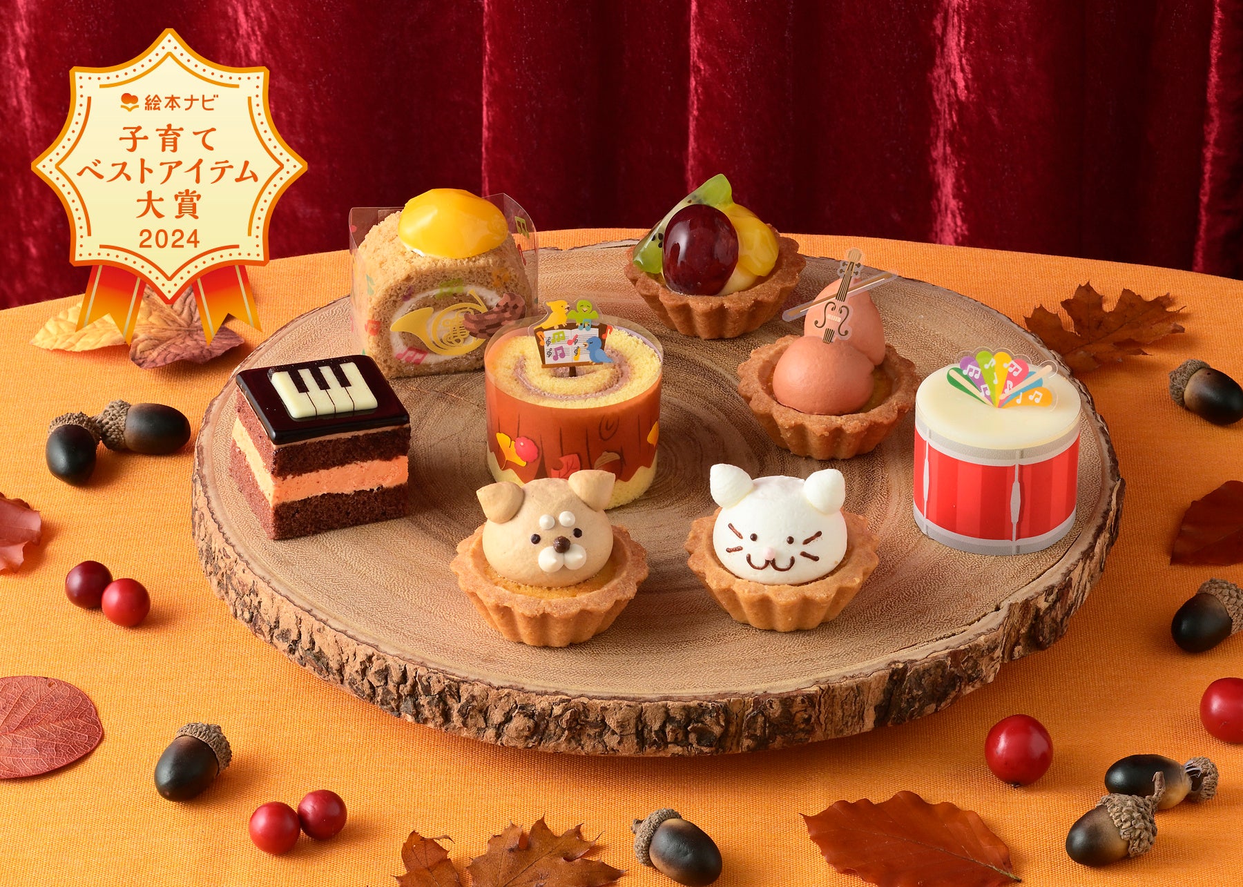 大好評の絵本を読むように楽しめるプチケーキのアソート“ケーキがつむぐものがたり”シリーズ第7弾。舞台は、いぬさんが率いる楽団の秋の音楽会。みんなで力を合わせて音楽会を成功させる物語を8つのケーキで表現しました。
