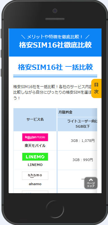 16社の格安SIMのプラン・特徴をまとめて比較