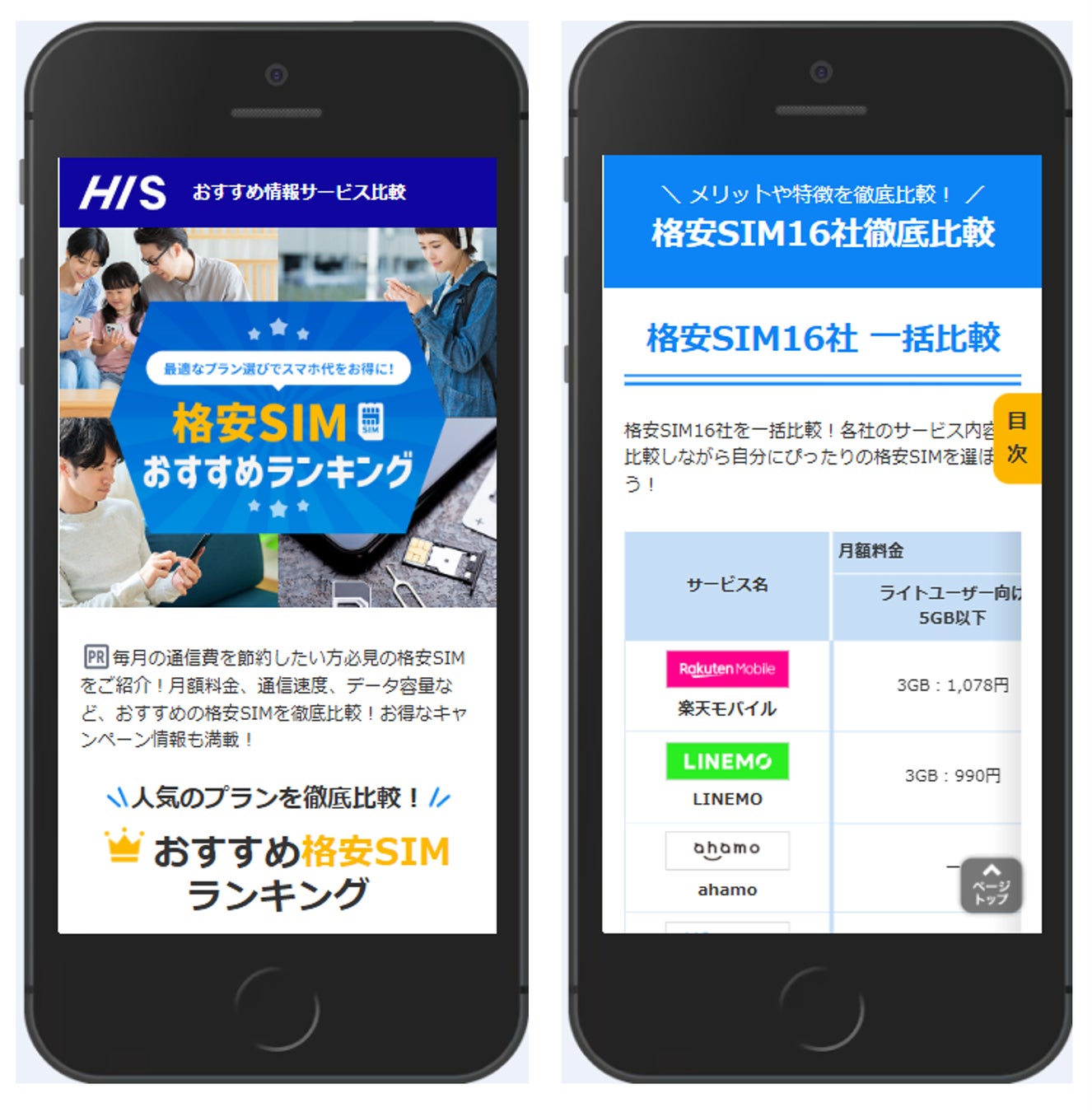 「HIS格安SIM比較サイト」 オープン