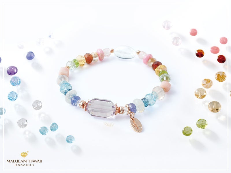 ハワイアンレインボーの上質なパワーストーンブレスレット『Aurora~光の女神~』、ハワイ発「マルラニハワイ」より、装いを新たに新登場!相性の良い天然石の種類を組み合わせた高貴なブレスレット。