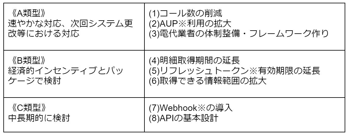 速やかな対応を期待するものから中長期的に検討が必要な課題まで、3類型に分け9項目について提言をしています。