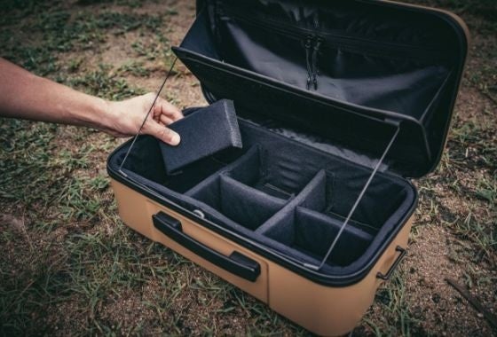 収納性が高くさまざまなギアをしっかりと保護します。内側には厚みのあるクッションを3枚付属しています。配置を自由に変えることができ、最大4か所に仕切れます。また着脱式で簡単に取り外せます。
