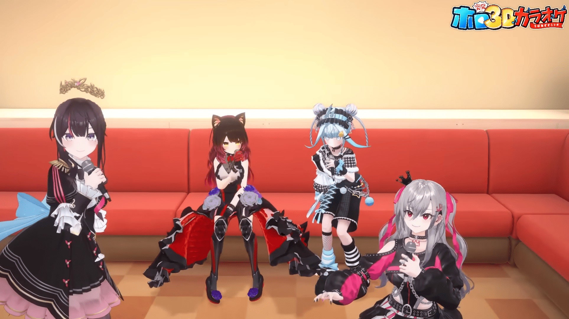 VTuberグループ「ホロライブ」所属のロボ子さん、AZKi、「hololive DEV_IS」所属の響咲リオナ、水宮枢の4名による3Dカラオケコラボ配信。リアルなカラオケボックスにいるような臨場感あふれる動きを実現。