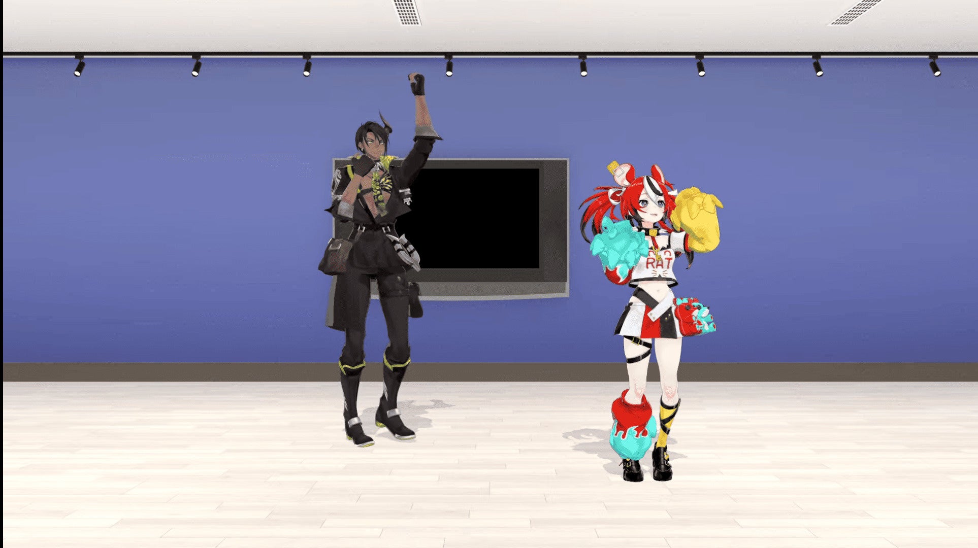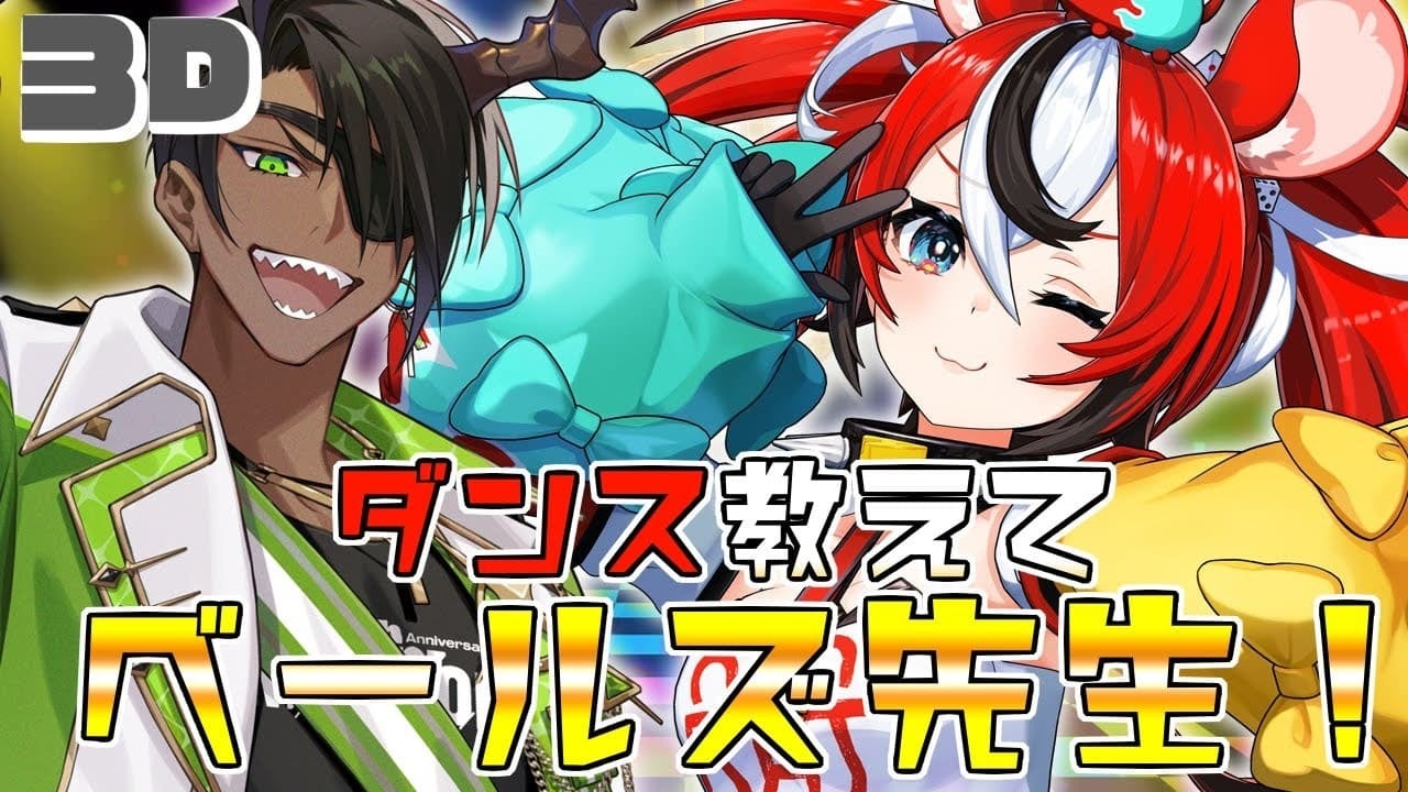 男性VTuberグループ「ホロスターズ」所属の荒咬オウガが、英語圏向けVTuberグループ「ホロライブEnglish」所属のハコス・ベールズからダンスレッスンを受ける配信。ダンスレッスンなどの動きがある企画でも軽装のまま3D配信を実施可能に。