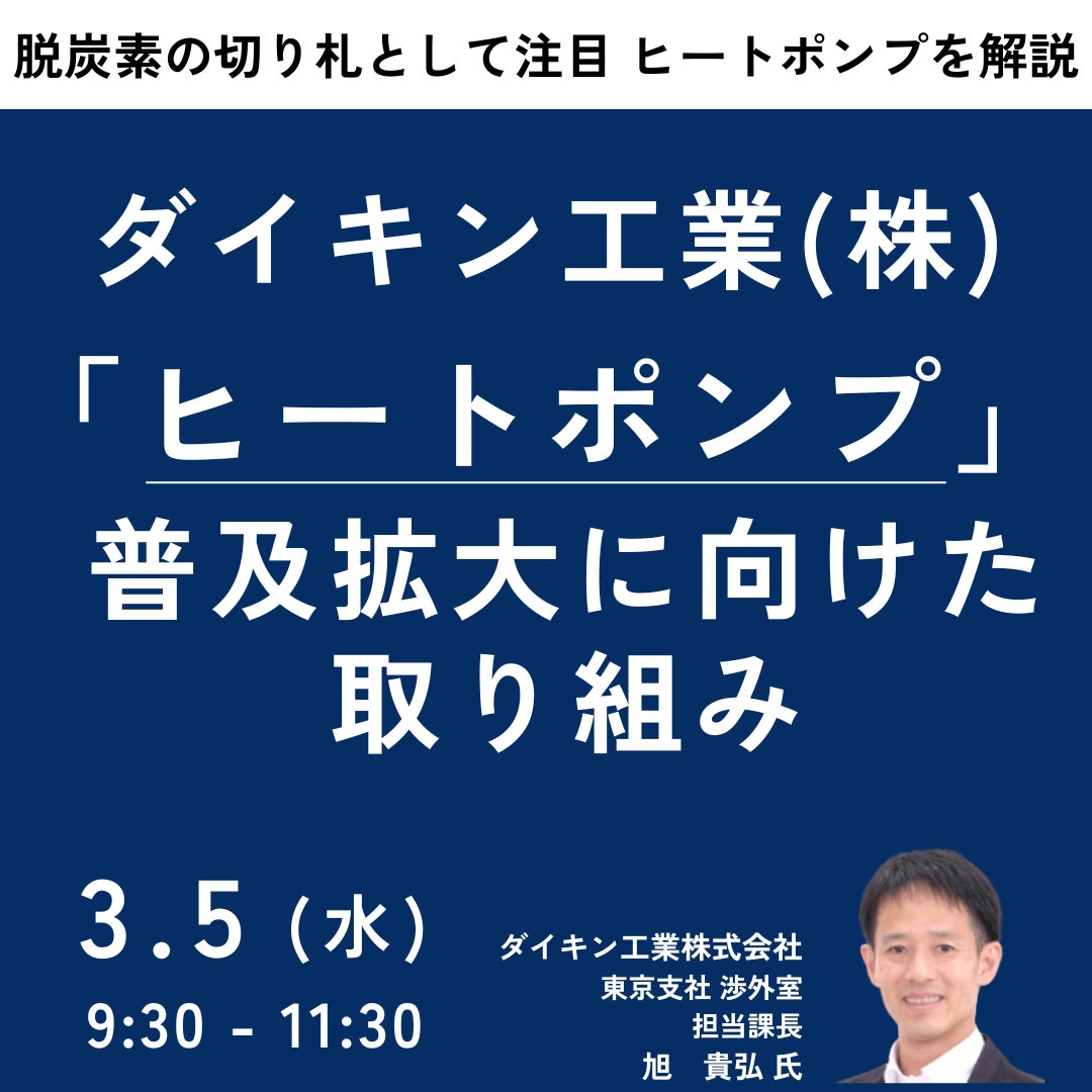 【JPIセミナー】「”ヒートポンプ”普及拡大に向けたダイキン工業(株)の取り組み」3月5日(水)開催