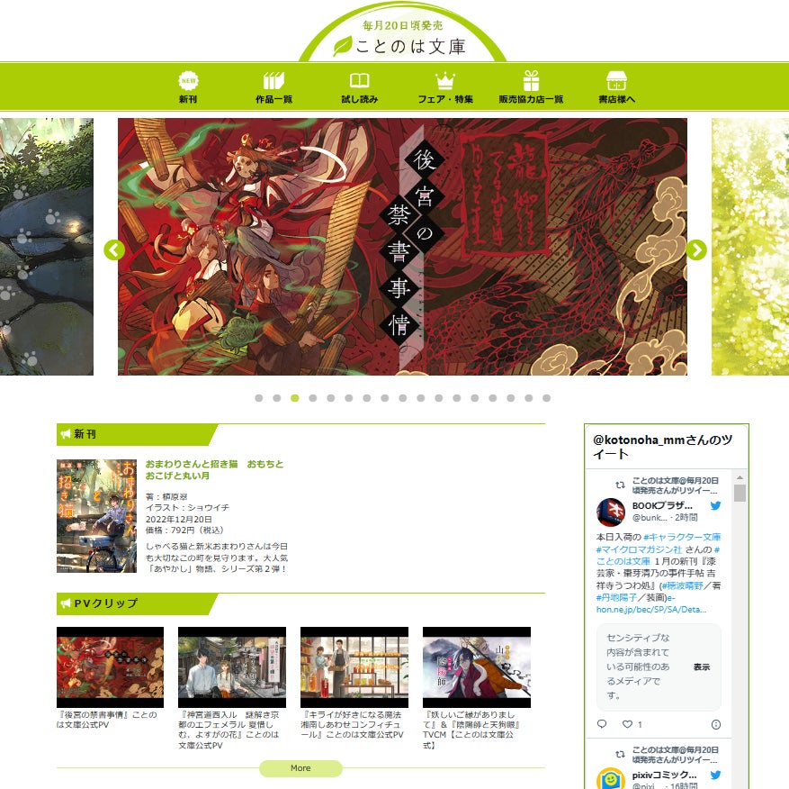 マイクロマガジン社(東京都中央区)は、オトナ女子向け文芸レーベル「ことのは文庫」のホームページをリニューアルいたしました。