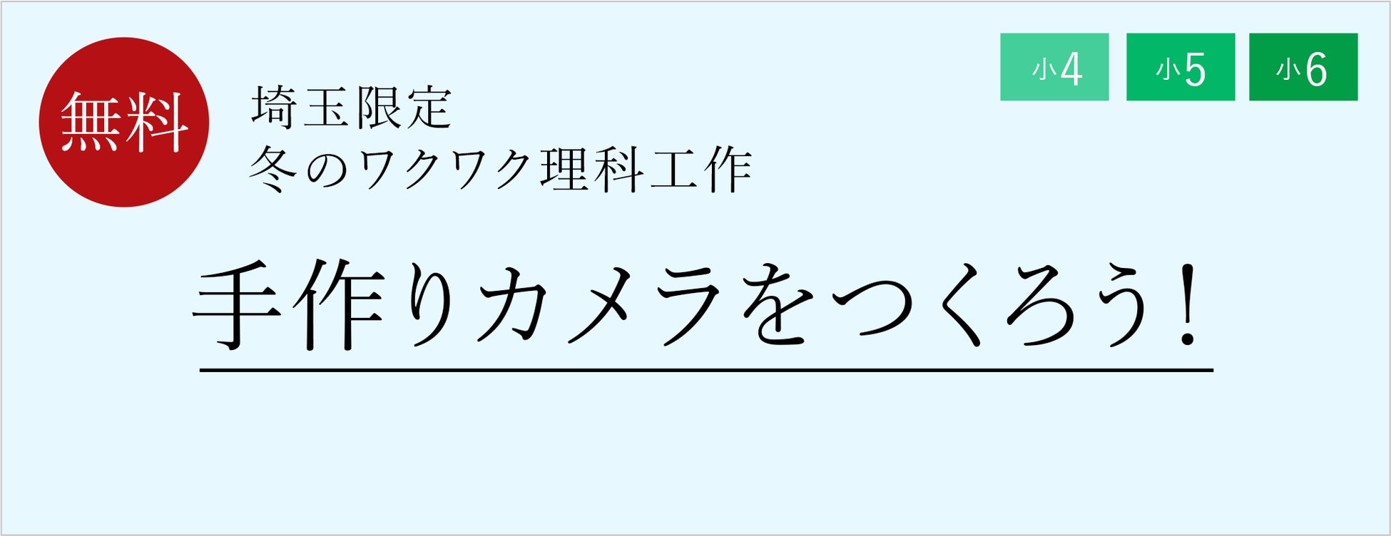 株式会社増進会ホールディングス(Z会グループ)のグループ会社、株式会社栄光(本社:東京都千代田区 代表取締役社長:下田勝昭)が運営する進学塾・栄光ゼミナールは、埼玉県内の教室限定で、小学4・5・6年生を対象に、冬のワクワク理科工作「手作りカメラをつくろう!」を、2024年11月23日(土)・24日(日)・30日(土)、12月7日(土)・8日(日)に無料開催します。