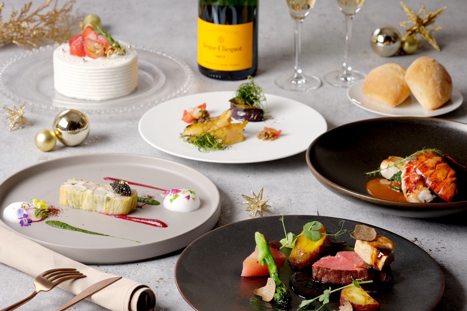 【みなとみらい】丘の上のロマンチックなレストランで過ごす特別なクリスマス稀少なフォアグラやキャビア、トリュフ、オマール海老、アワビ等の豪華食材を使用した「乾杯酒ヴーヴクリコ付クリスマスディナー」