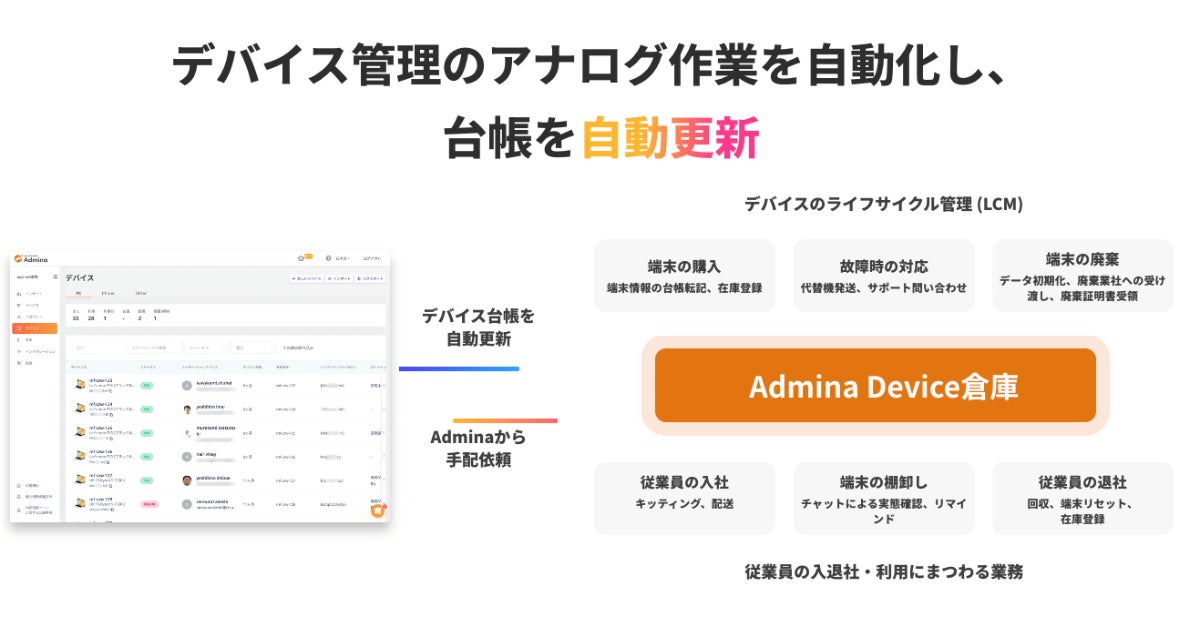 マネーフォワードi株式会社(以下「当社」)は、情シス向け業務OS『マネーフォワード Admina』において、端末の在庫管理・キッティング・棚卸しをサポートする「Device倉庫プラン」の提供を開始します。