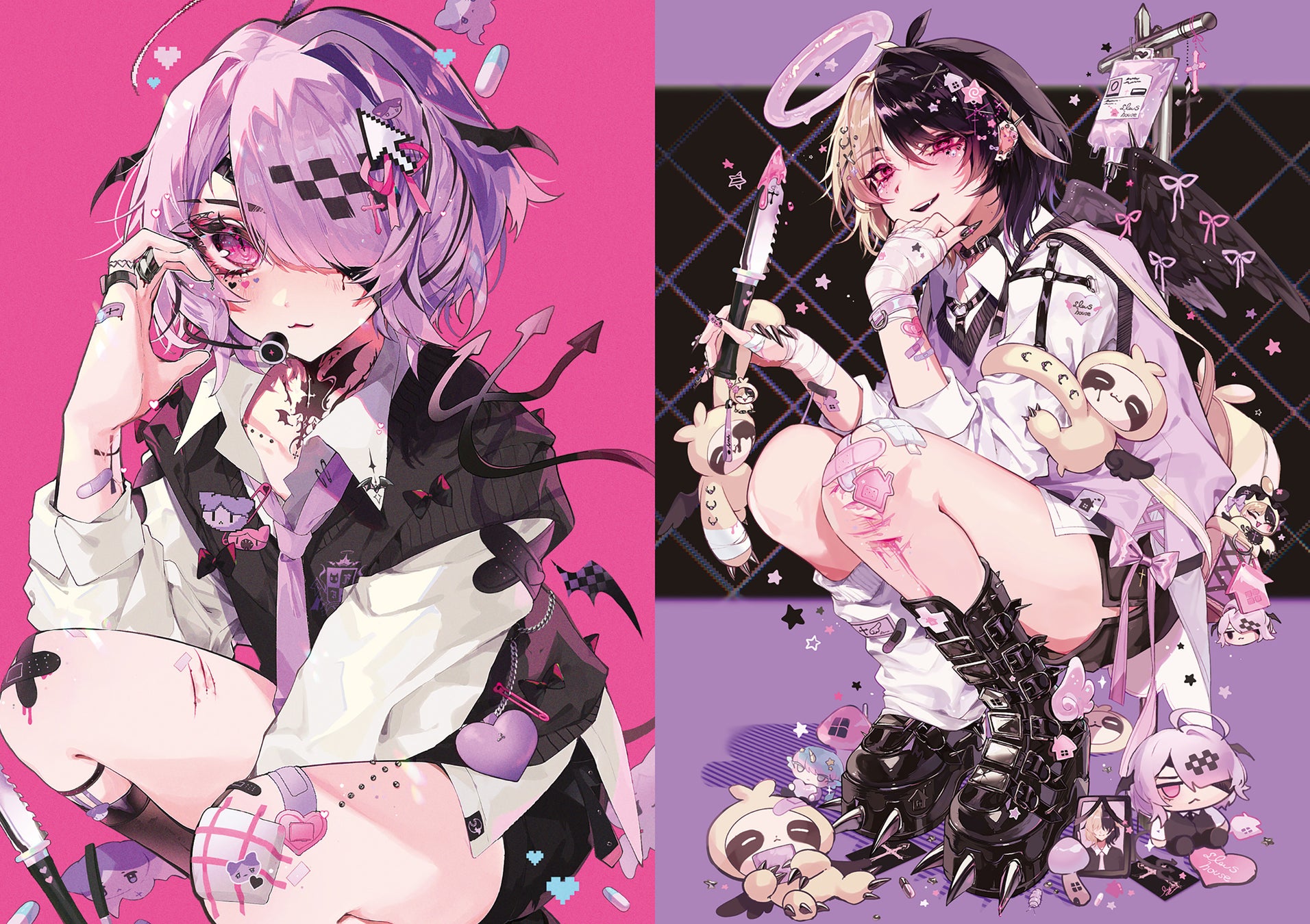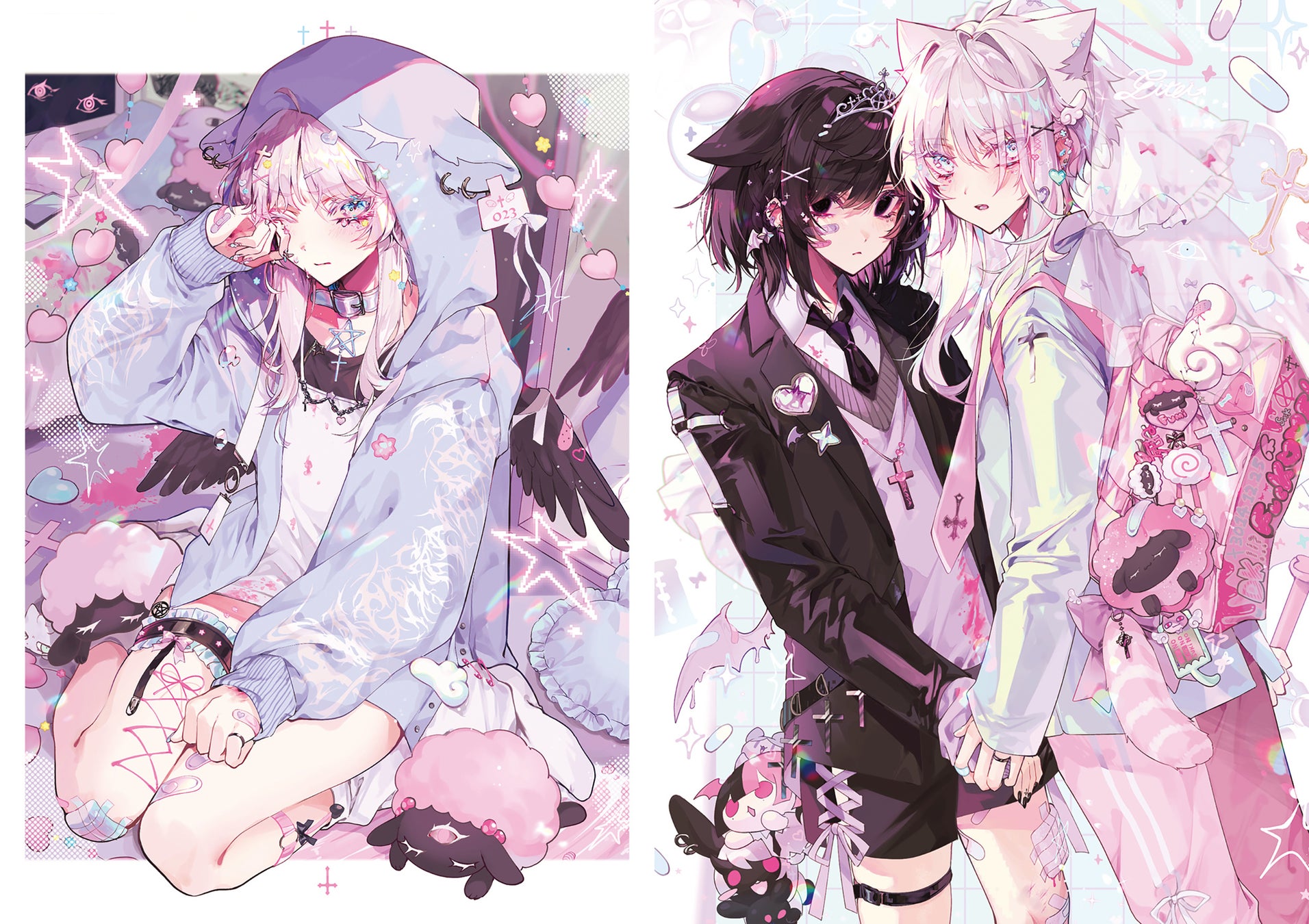 パステルゴス、クリーピーキュート、ナイトメア、スクールボーイ、ヴェイパーウェイヴ、トラウマコア、デコラ、ウェブコア、地雷スイート…。不穏な闇とキュートなファッションに彩られた魅惑のキャラクターたちを詰め込んだゑいたの初作品集!