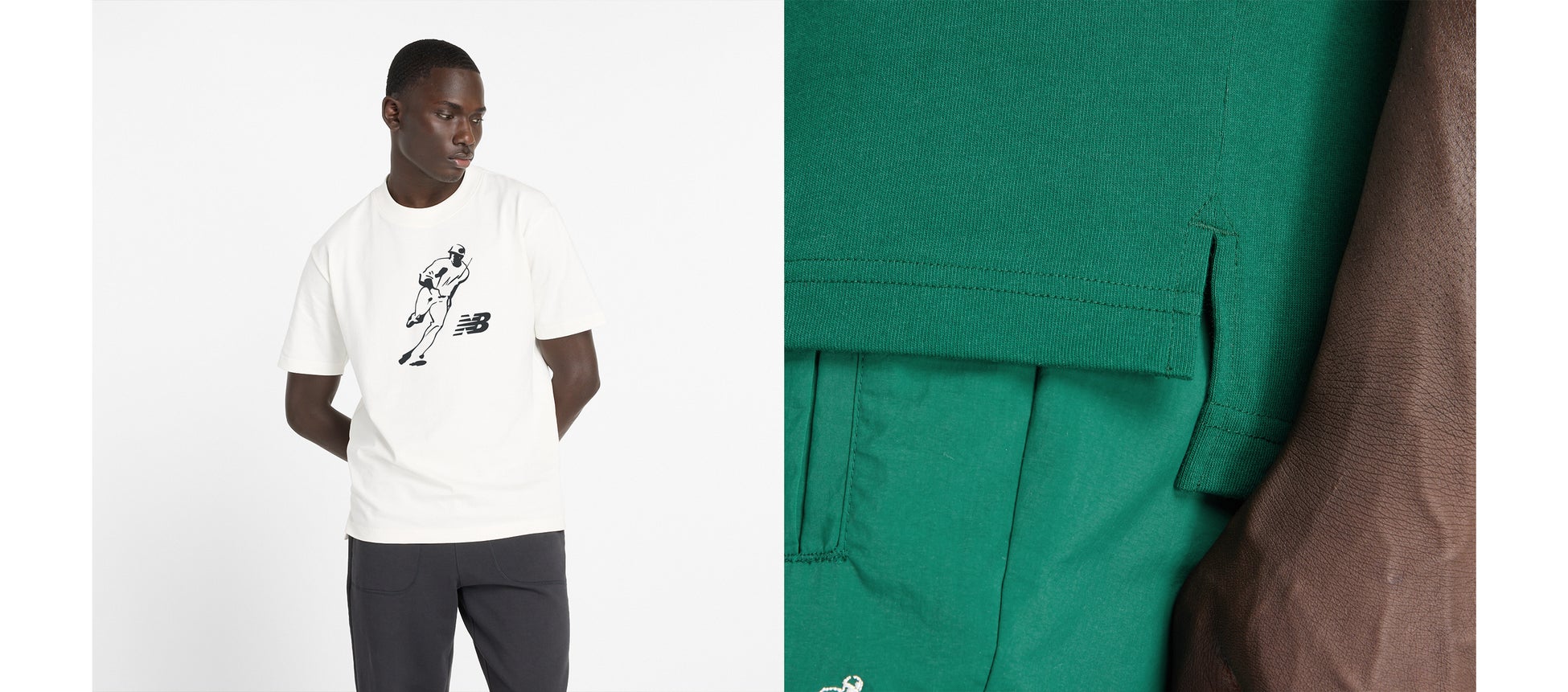 「このコレクションは伝統的なオールドスクール・スタイルに敬意を払いつつ、ニュースクール的なひねりを加えているところが気に入っています。すべてのアイテムが、フィールドの中でも外でも、アスリートのワードローブにフィットします。その完璧なバランスをとらえるためにニューバランスとコラボレーションすることは、僕にとってとてもエキサイティングな瞬間でした。」