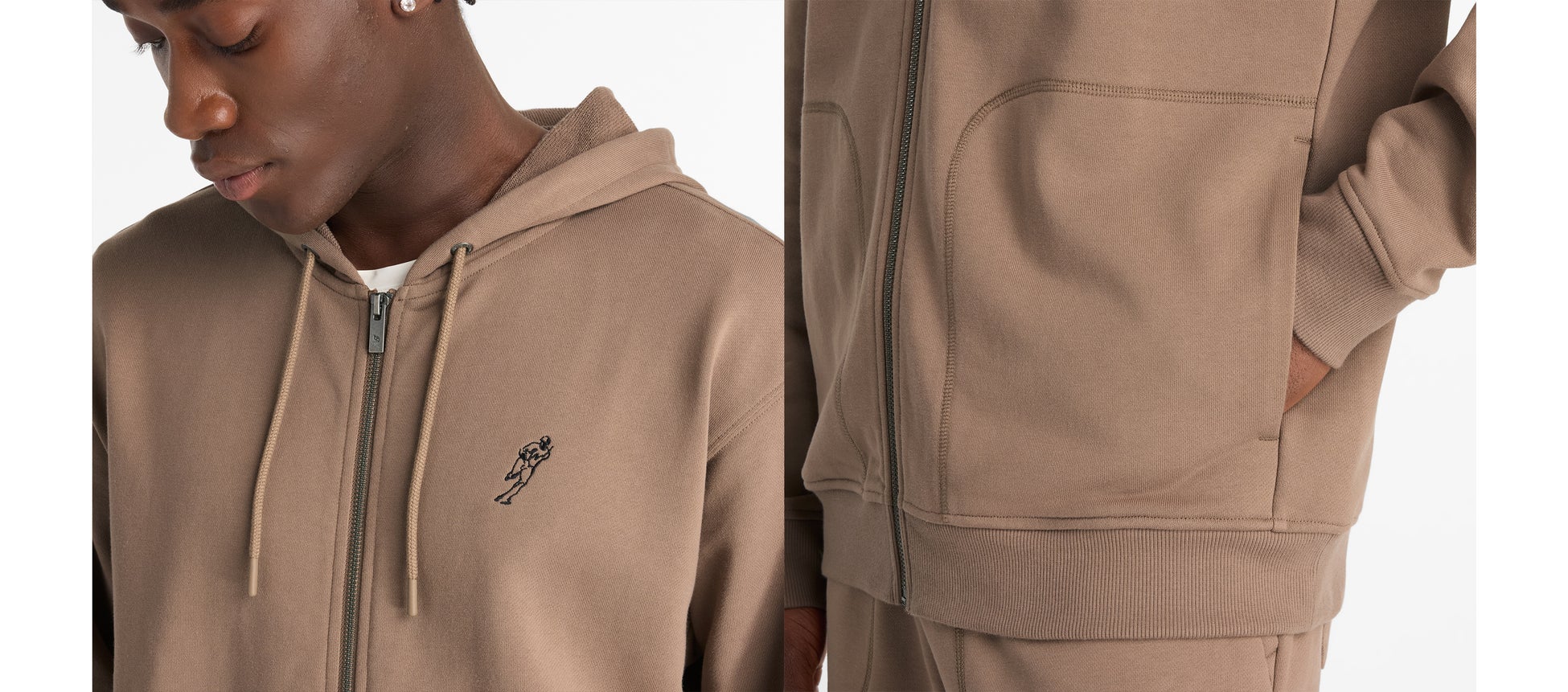 フレンチテリーフルジップパーカーは、柔らかなフレンチテリー素材を使用したクラシックなシルエットで、胸には刺繍の大谷翔平選手のシグネチャーロゴ、背中にはスクリーンプリントのニューバランスロゴがあしらわれています。野球のステッチからインスパイアされたデザインは、繊細な質感を提供するユニークなディテールです。