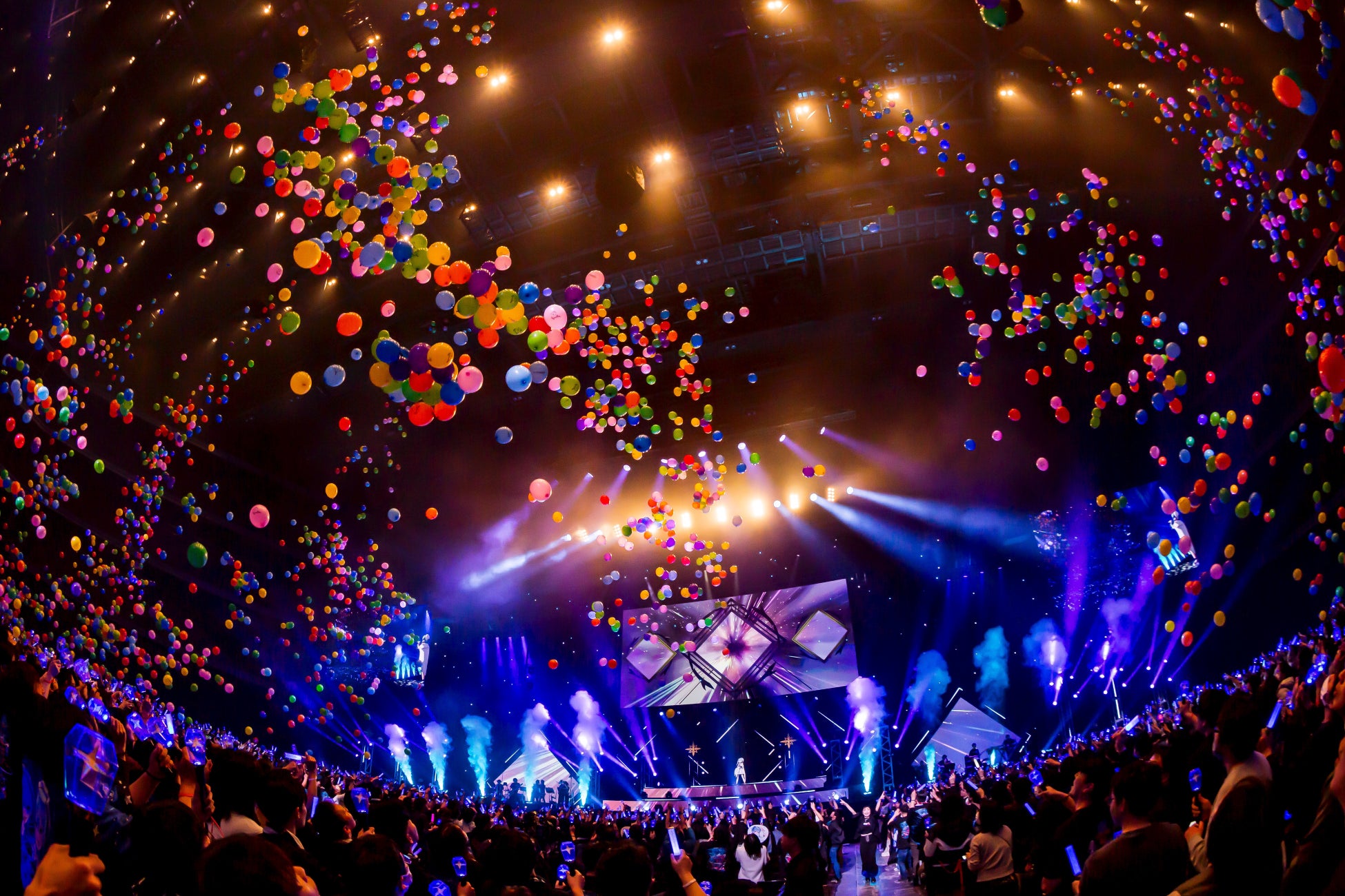 鳴り止まないアンコールは、スクリーンに手書きのメッセージが映し出された瞬間、大歓声に変わった。大ジャンプで登場したすいせいは、1月リリースの「月に向かって撃て」(TVアニメ『真夜中ハートチューン』OPテーマ)でアンコールパートをスタートさせた。会場上部に浮かんでいた月に向かってすいせいがバズーカを撃つと、見事命中し、爆発した月からバルーンが降り注ぐ。併せて、ダンサーのバズーカからはサイン入りグッズも発射された。