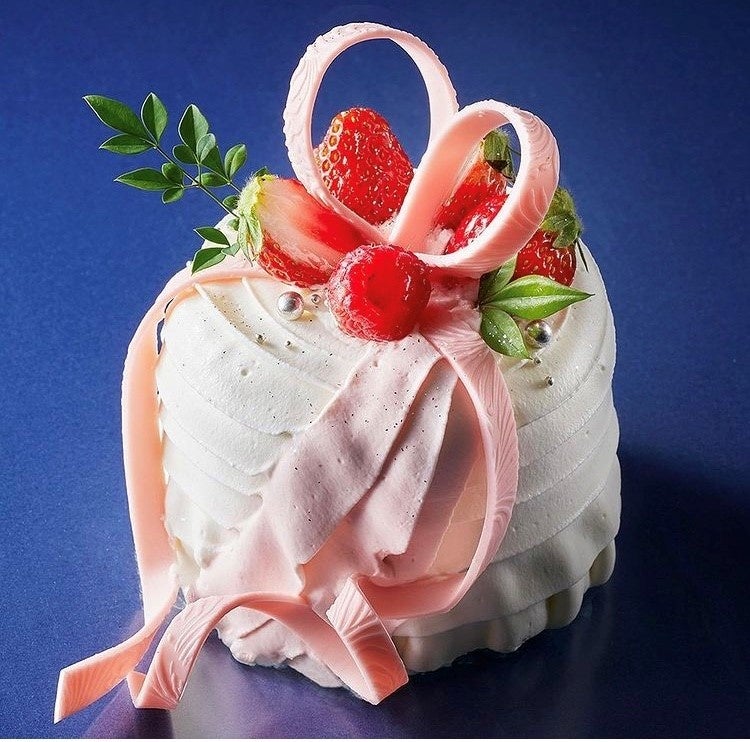 七夕の夜空をイメージしたショートケーキ。織姫のような華やかなデコレーション。ラズベリーやアラザンで涼しげに仕上げています。