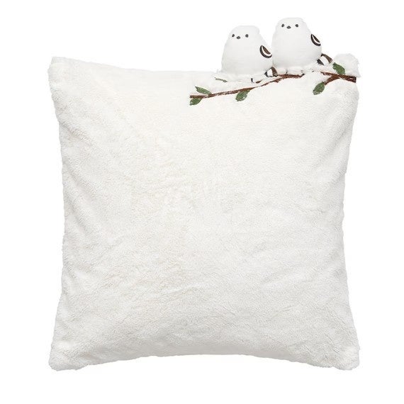 シマエナガ柄とふわふわの肌ざわりがたまらない!見ても触れても癒やされるクッションカバーです♪