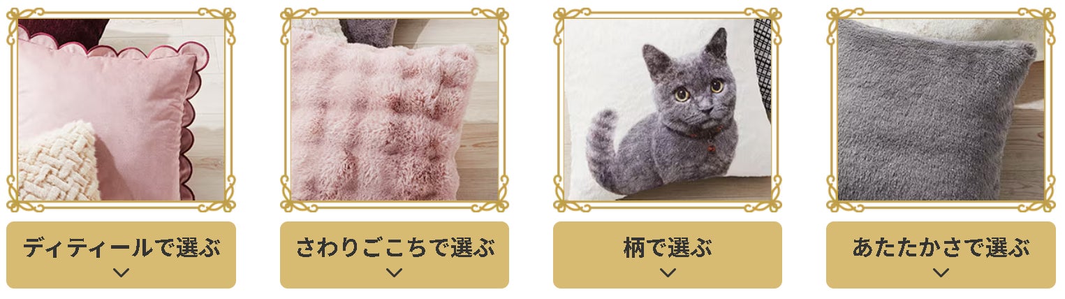 今回公開した特集ページでは「ディティール」「さわりごこち」「柄」「あたたかさ」に分けて、デコホームのクッションカバーを選びやすくご紹介。お気に入りのカバーが、きっと見つかります。