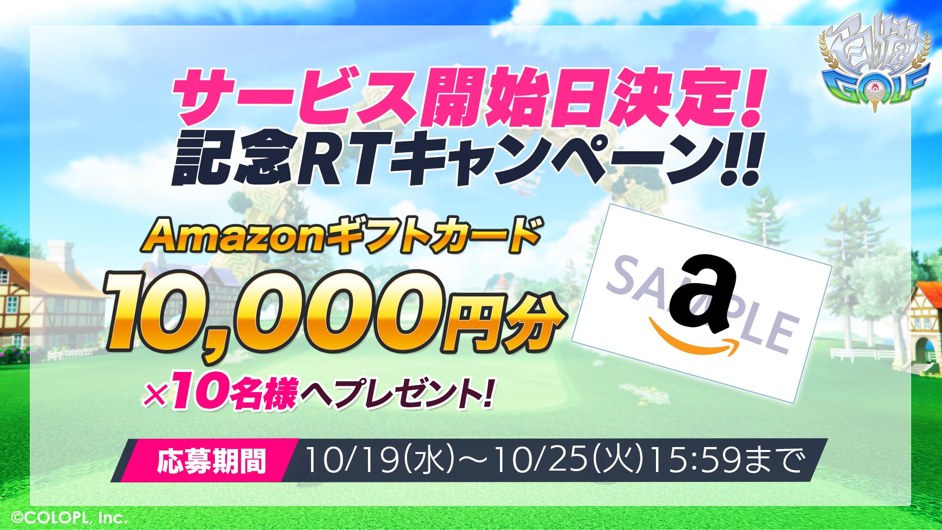 サービス開始日の決定を記念して、公式Twitterアカウント(@wcat_golf)では「Amazonギフトカード10,000円分」が抽選で10名様にあたるリツイートキャンペーンを開催中。『白猫GOLF』公式Twitterアカウントをフォローし、対象のツイートをリツイートすることで応募が完了となります。ぜひご参加ください。