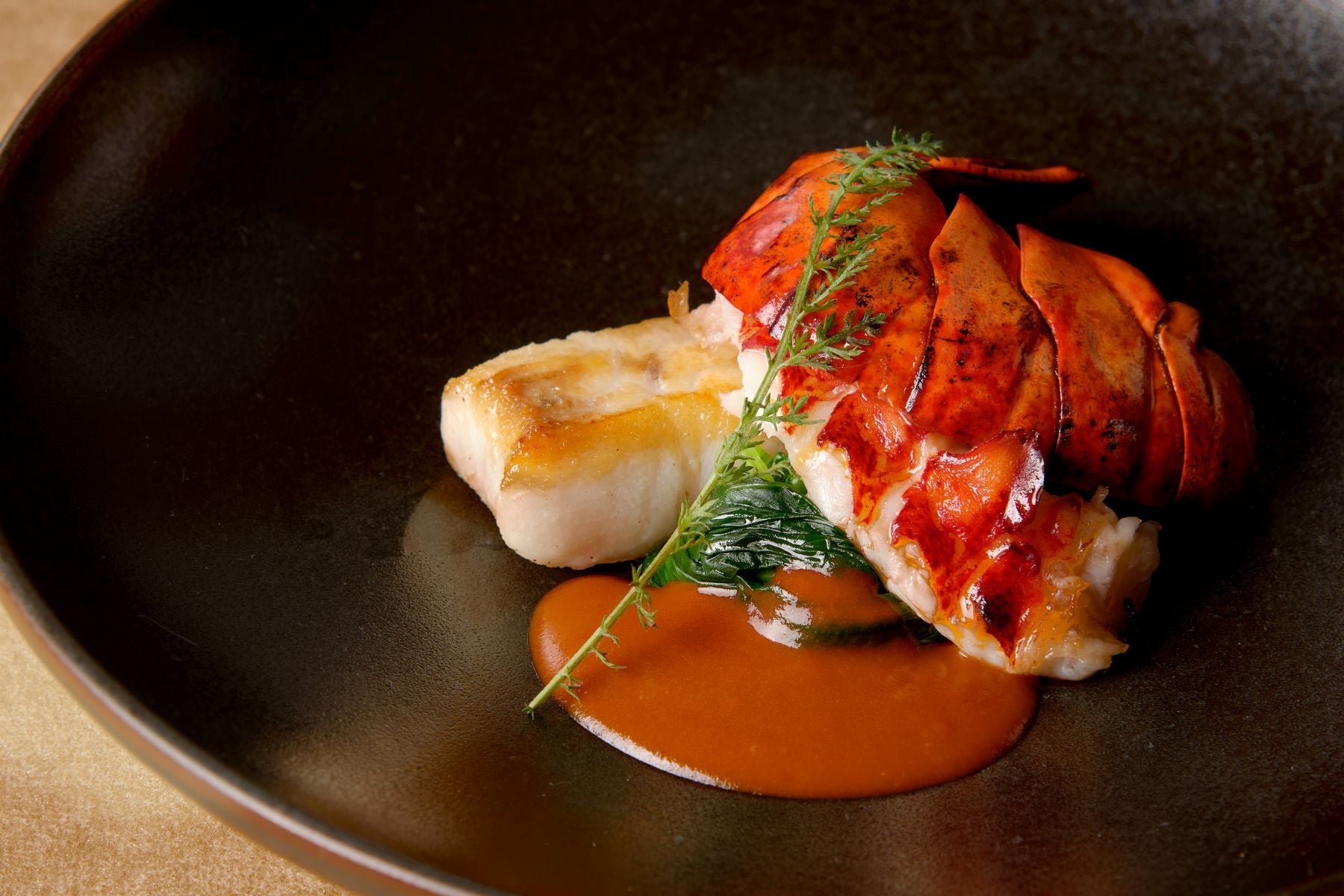 オマール海老と寒平目のサルタート ~甲殻類のソース 黒レモンのアクセント~