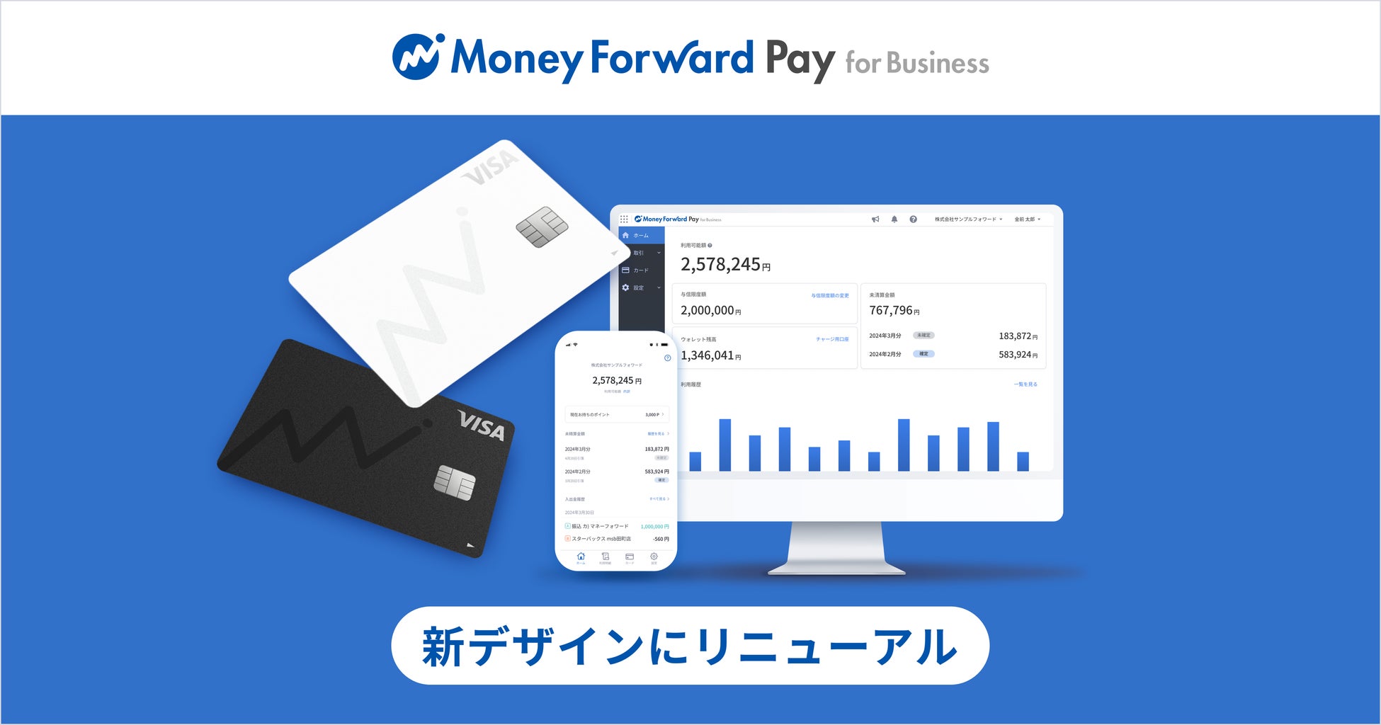 株式会社マネーフォワードは、SaaS基盤を活用したFintechサービス『マネーフォワード Pay for Business』の決済手段として提供している『マネーフォワード ビジネスカード』において、カードデザインをリニューアルしました。
