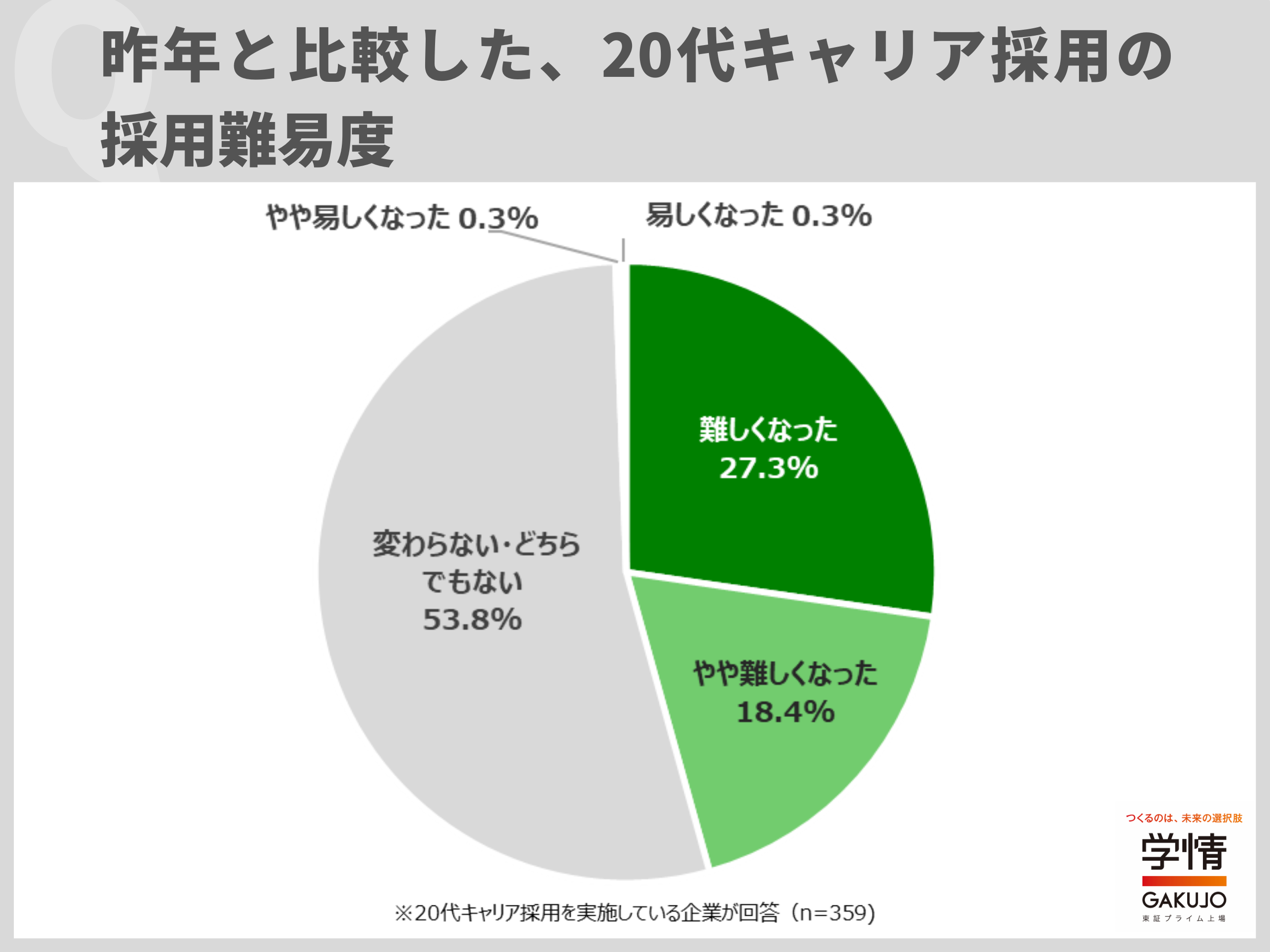 キャリア採用(経験者採用)の拡大に伴い、20代を対象にした採用を強化する企業が増えています。20代を対象にしたキャリア採用の難易度について調査しました。