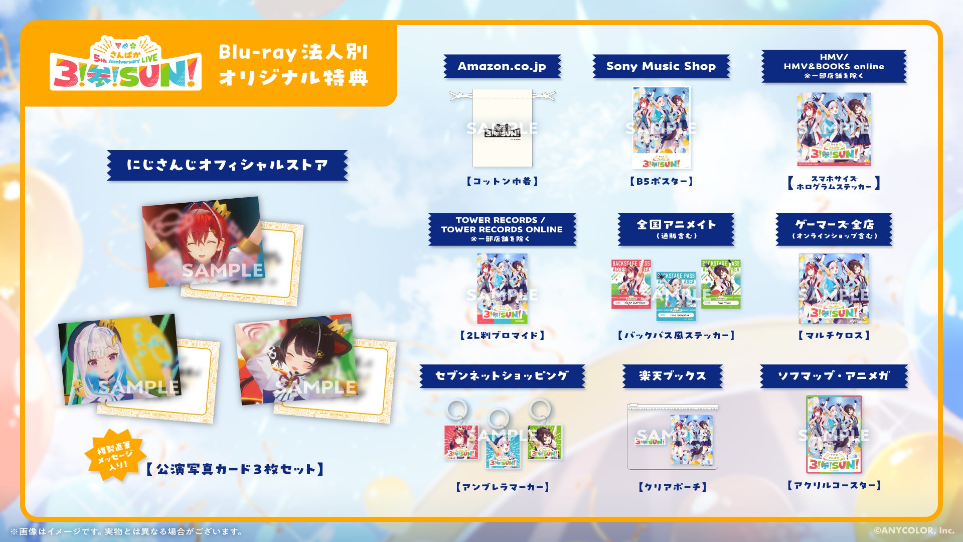 2025年8月27日(水)発売 にじさんじの「さんばか 5th Anniversary LIVE 〜3!参!SUN!〜」Blu-ray特製収納ボックス&封入特典&法人別オリジナル特典デザイン公開!