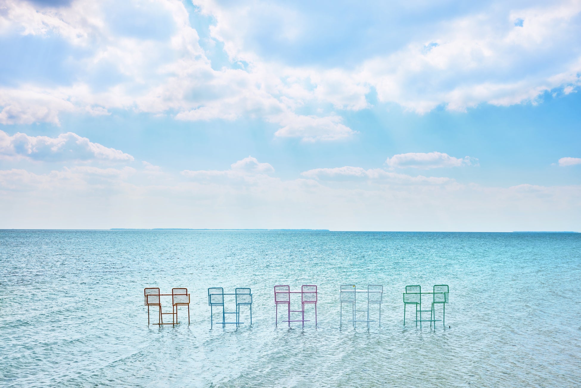 ビーチから遠浅の海を歩いた先に、彩りが豊かな海上のカウンター席が登場します。碧く色付く海と空を望む海上のカウンター席で、波音に耳を傾けながら、ゆったりとした時の流れを感じることができます。夏の陽気に包まれながら、至福のひとときを味わうことができる特等席です。