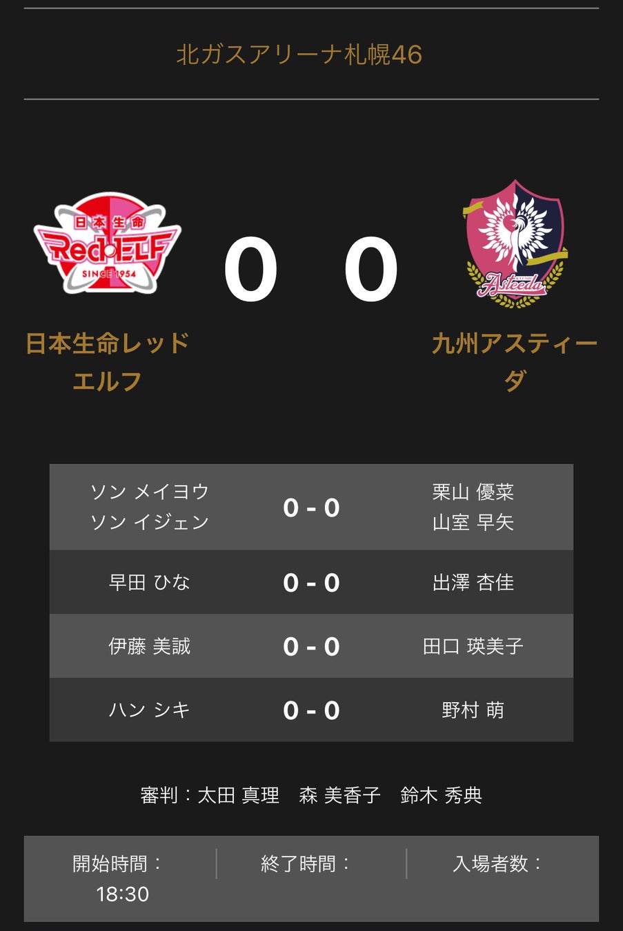 ノジマTリーグ2023-2024シーズン公式戦 12月1日(金)18:30試合開始 日本生命レッドエルフvs 九州アスティーダ 対戦オーダー発表