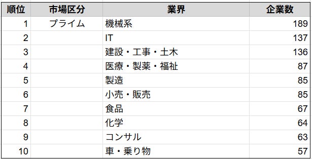 【2025年最新版】プライム市場の業界別 企業数ランキングを発表/SalesNow DBレポート