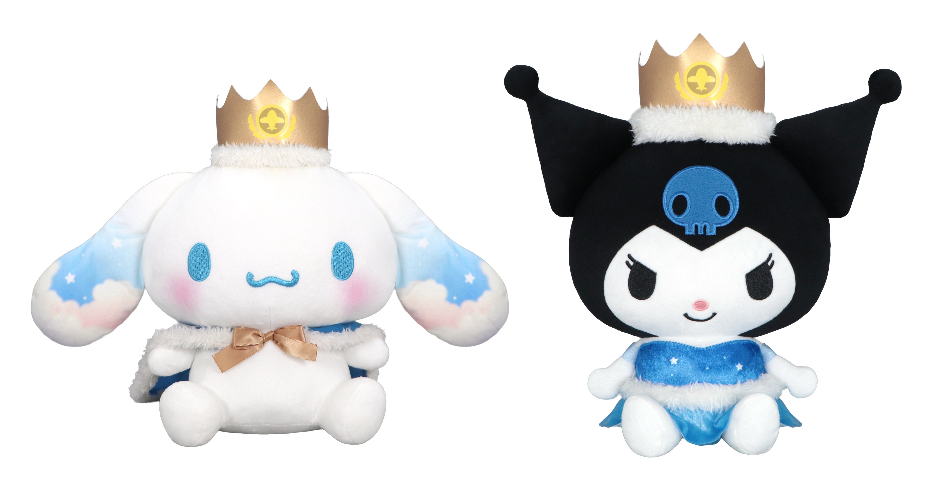 お空をイメージした「とくべついしょう」を着た「シナモロール」、「クロミ」のBIGぬいぐるみ。