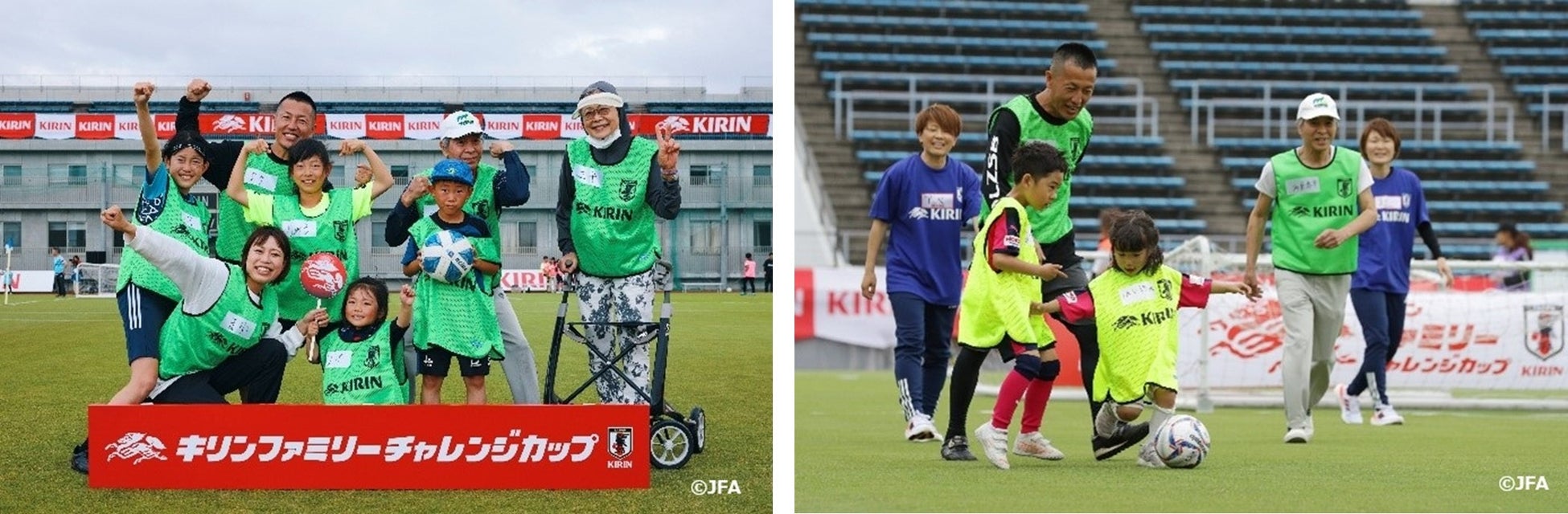 「キリンファミリーチャレンジカップ」は、歩いて行うため誰もが参加可能な“ウォーキングフットボール”のイベントです。当日は、AFCアジア予選突破を決め、2026年に向けて「最高の景色」を目指す「SAMURAI BLUE」をゲストに迎え、サッカー経験はもちろん、年齢や性別、障がいの有無にかかわらず、大人も子どもも一緒にプレーを楽しむことで、サッカーの楽しさを通して、人と人のつながりや絆を深め、日本中を元気にしていきます。