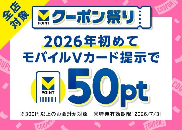 今回のキャンペーンでは、さまざまなお得なクーポンをご用意しております。モバイルVカードのご利用で、お会計で貯めた通常ポイントが2倍になる『毎週配信!1週間ずっと2倍クーポン』(※1・2)や、クーポンセット後、2026年1月以降初めてモバイルVカードを提示した方にVポイント50ポイントを進呈する『2026年初めてモバイルVカード利用クーポン』(※1)。そのほか、Vポイント提携店舗やネットサービスで使えるお得なクーポンも配信いたします。