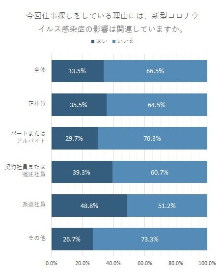 新型コロナウイルス感染症の影響で仕事を探している人は33.5%