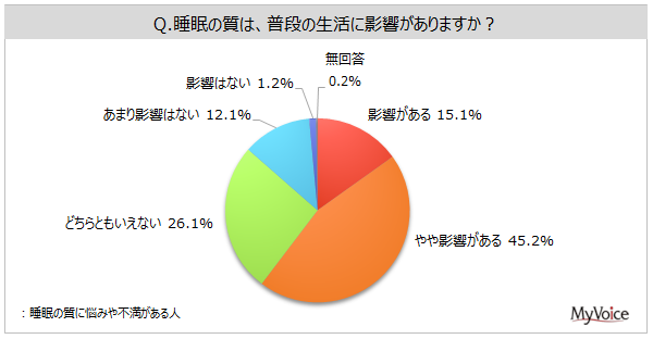 【睡眠の質に関する調査】睡眠の質に悩みや不満がある人は約66%。そのうち、普段の生活に影響がある人は6割